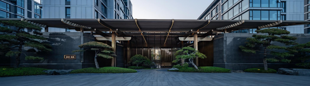 大门两侧的消防门蕴含中国人的含蓄之美,先见景后见门,入口与景观融为一体。门前的古松、山石、草坪犹如一块屏风,若隐若现。