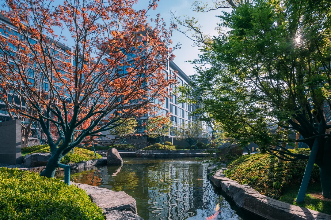 甄选植物界“活化石”水杉树,挺拔耸立,郁郁葱葱,树冠高度可达七八层楼高,宛若一座自然漂浮的“水上杉林”,将建筑掩于林荫,直抵心灵的悠然静逸。