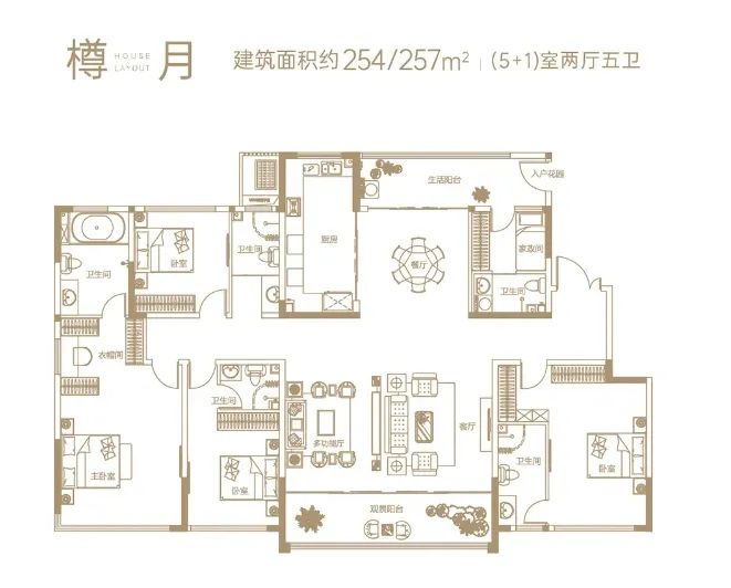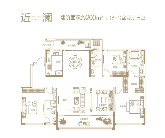 在项目景观视野最好的高层楼栋,户型设计为多面宽超大尺度南向布局,将景观优势最大化展现,提高户型的价值点和竞争力。