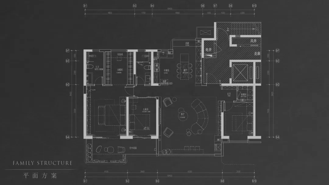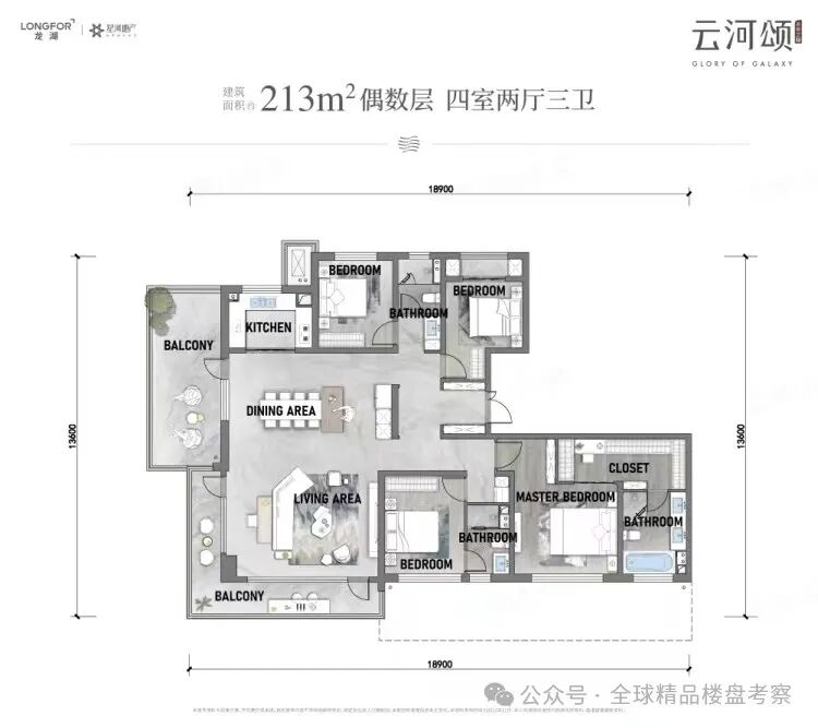 169㎡户型作为一个高端的四居室产品,除了拥有更大更宽阔的室内空间,还加入了约75㎡超大客厅,跑道式阳台,以及建面约30㎡的空中花园,形成了南向转角环幕视野。创新LDKG一体化设计,奢尚空间尺度,将精致生活完美呈现。