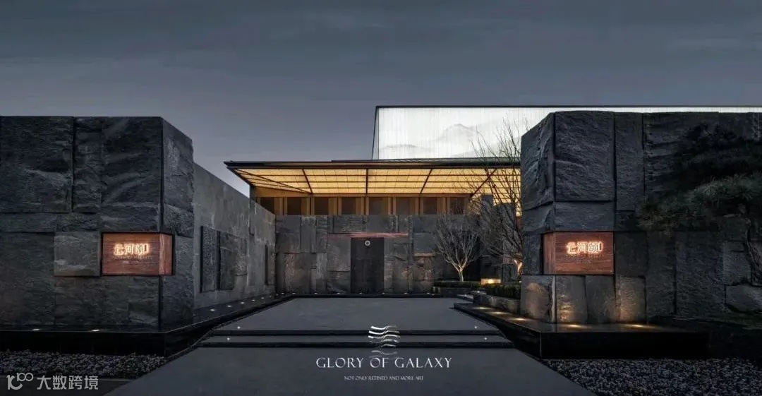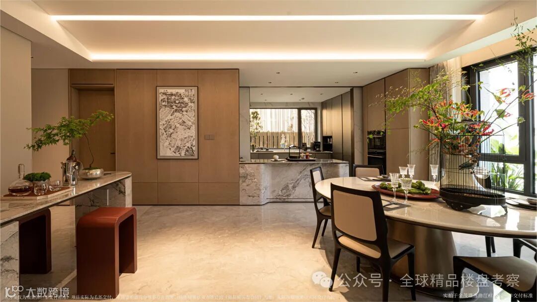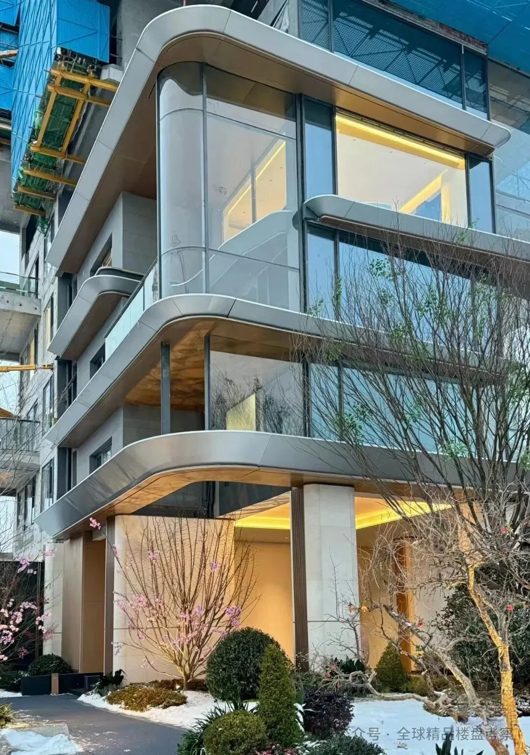 超四代孤品叠院,甄选原产于巴西海蓝宝奢石,采用窄缝密拼工艺拼接弧形石材,在交界关系上给予更加挺拔的线条变化,实现建筑艺术氛围与居者生活体验的完美融合。