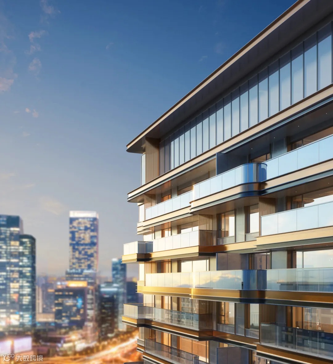 再以金腰线横缀,让建筑更具灵动飘逸性质,更显高贵之气,反复推敲臻选的视觉色彩意境,于城市界面之上,再造无惧时间的吸引力。