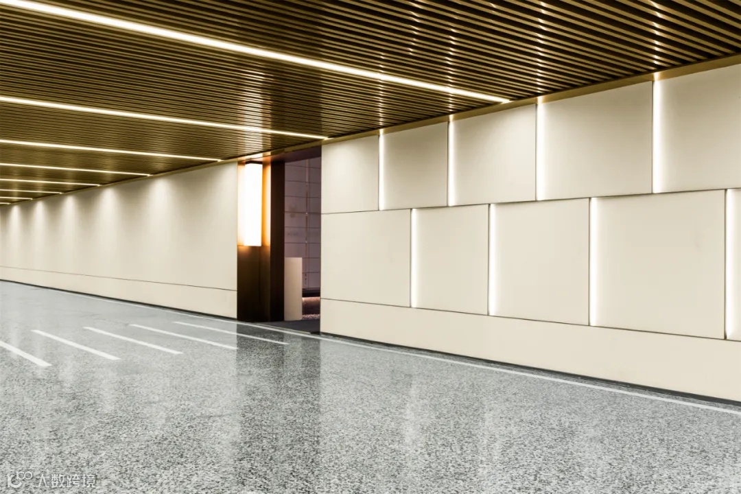 其实公区装修,最难的部分就是连纹砖对纹。大家仔细看左边的墙面,全都是带纹路的,工人铺贴每一块瓷砖的时候,那都是严格按照编号施工的。