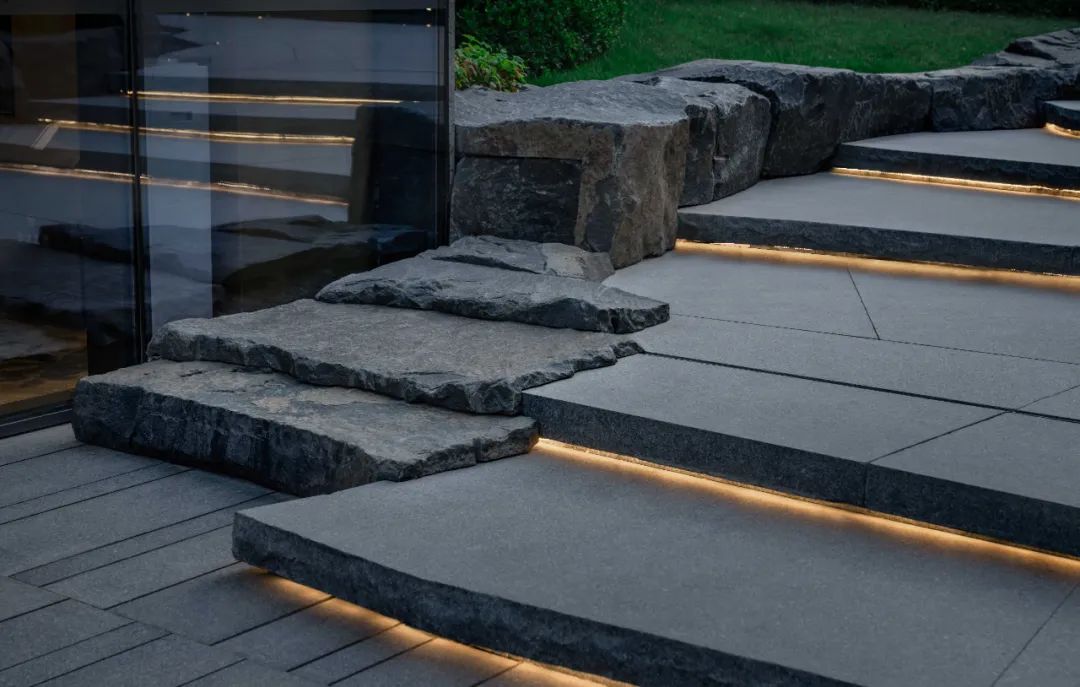 在车库出入口处,金沙匠人别出新裁,设计全新超高挑空设计、感应式灯光系统、墙面天然石材,业主不管是出门还是归家,都能给您满满的仪式感。