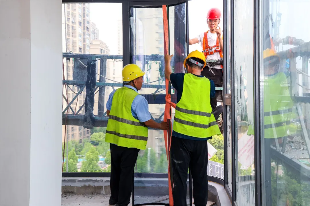 其次,转角圆弧玻璃安装难度非常高,要求玻璃制作精度误差不得超过2mm。而且每一栋楼的圆弧尺寸都不相同,需要工作人员现场测量,并把数据同步给厂家。
