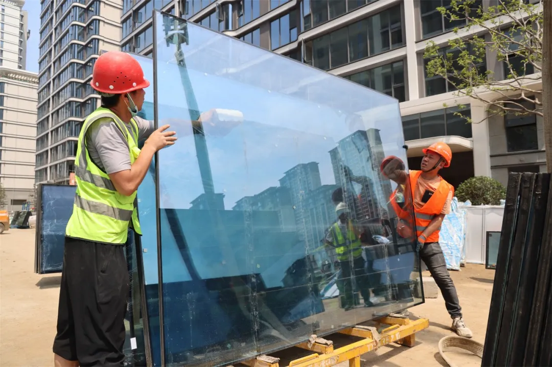 其次,转角圆弧玻璃安装难度非常高,要求玻璃制作精度误差不得超过2mm。而且每一栋楼的圆弧尺寸都不相同,需要工作人员现场测量,并把数据同步给厂家。