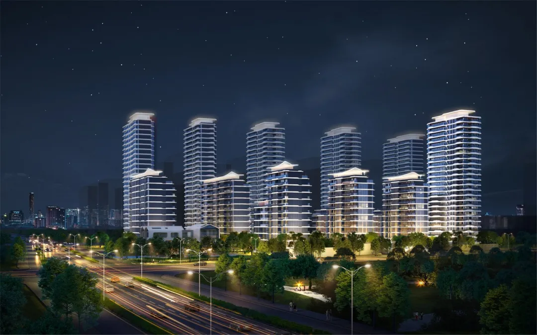 项目高层立面设计上,以曲线为“引”,自下而上生长的线条交错、融合、延伸、无边界,最终在三维尺度上形成“超流线”,呈现出流畅而富有张力的曲线序列。
