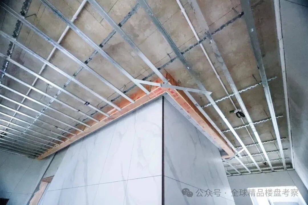 看得见的地方难,看不见的地方更难。在商丘金沙壹号院的入户大堂,每一个管线的位置,每一根方管的距离,那跟用尺子量出来的一个样。