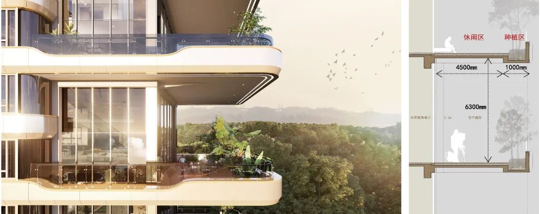 创新空中院墅产品在建筑形式、景观融合、结构选型、幕墙设计与成本控制等方面同样存在较多需协同设计的设计交界点,结合多次空中花园落地及后期入住业主访谈经验,采用局部降板覆土模式。既保证业主在空中花园有足够的绿化种植空间,又可以极大限度降低整体荷载,避让幕墙与景观交接处易于出现的做法成本提升问题。
