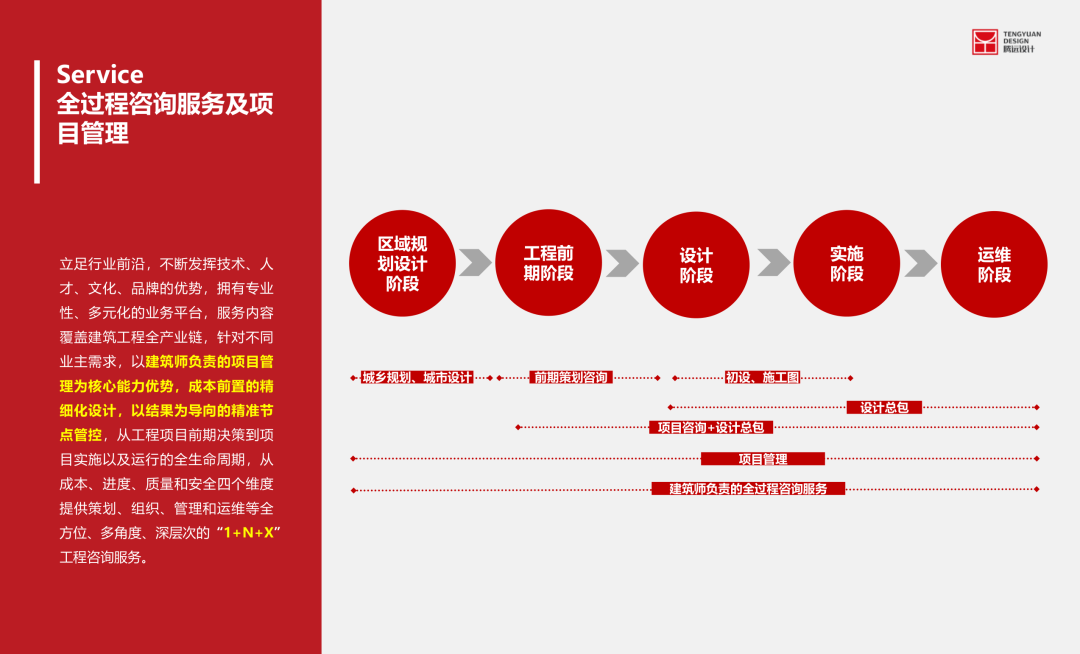 以建筑师负责制的设计为核心,结合造价咨询、项目管理、项目监理、全过程咨询项目管理手段,并进行流程、组织深度融合,形成完整的项目全过程服务能力。
