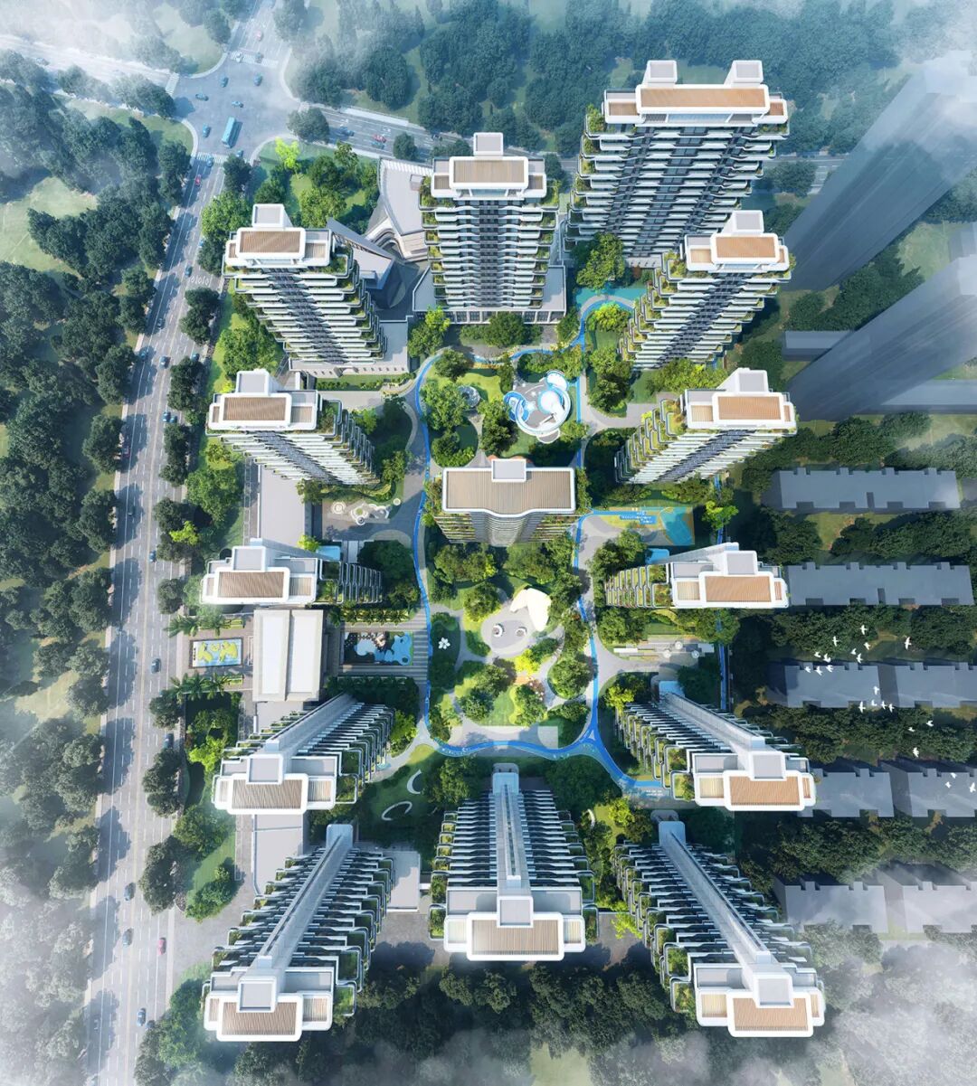 以“城市生态花园”为核心规划理念,通过多层次的生态引入,注重在竖向上延伸打造垂直庭院,塑造公园上的邻里生活中心。打造西海岸仅此一处的新城市生活场域。
