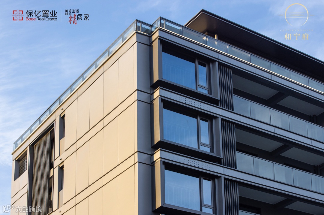 再搭配大面积具有良好降噪功能的LOW-E中空钢化玻璃+石材干挂的单元门口,质感十足;铝板包裹着的大玻璃窗,宛如一个个玲珑浮凸的“风景油画框”,随时都能倒映蓝天白云。