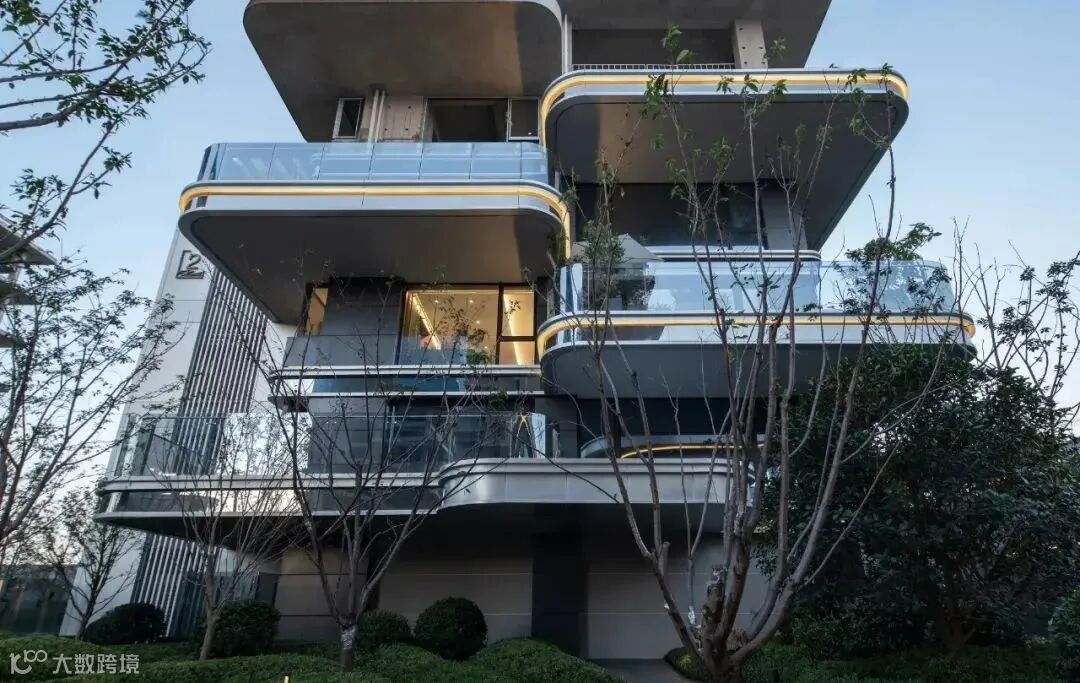 住宅类,融创义乌壹号院把每一层阳台玻璃栏板拉通,以此强调横向的线条关系,大面积玻璃铺陈和简洁硬朗的线条搭配,勾勒出几何立体质感。