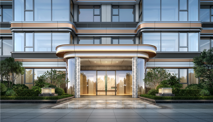 · 在立面效果上:玻璃幕墙的透明材质可以使建筑外表面呈现出清晰、透明、轻盈的效果,突出建筑物的轮廓和建筑结构的美感,增强了建筑物的视觉冲击力,让建筑形象在高大宏伟之上更具现代感和精致感。