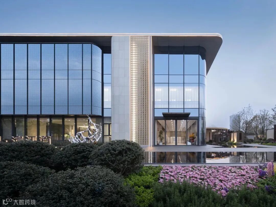 示范区,合肥伟星滨江道示范区采用通高的玻璃幕墙与玻璃砖、白色石材形成了凹凸虚实分明的立面效果,打造出了现代优雅的城市会客厅入口形象。