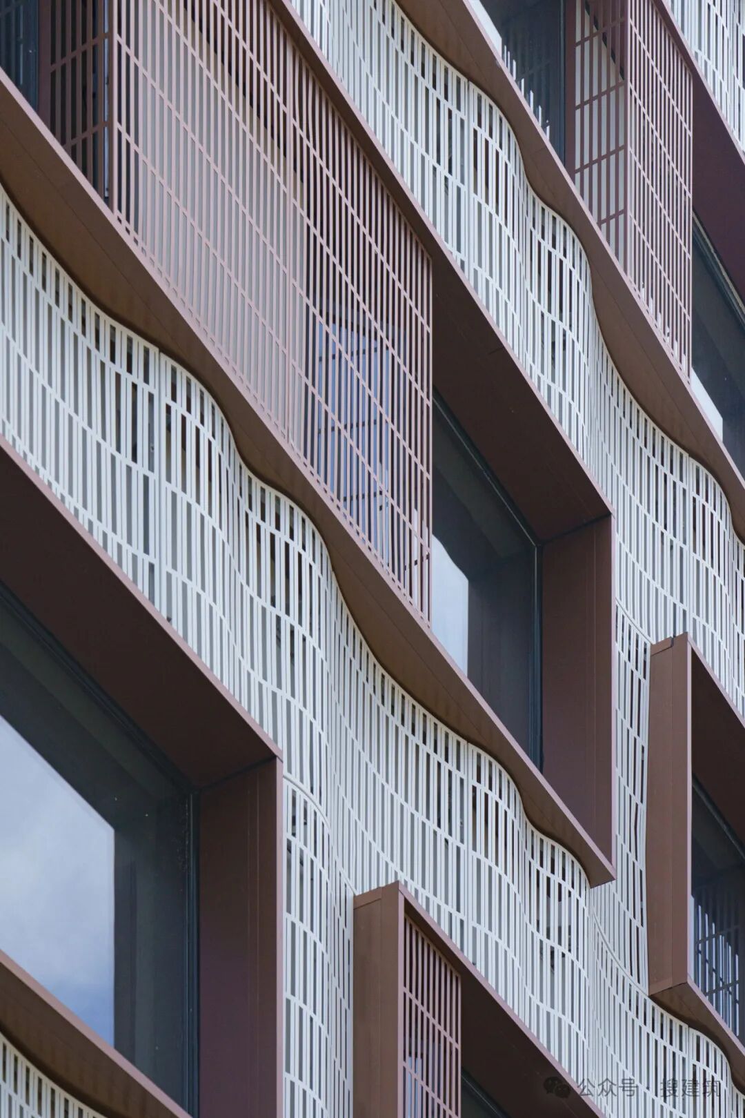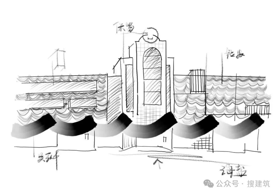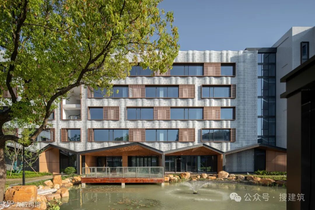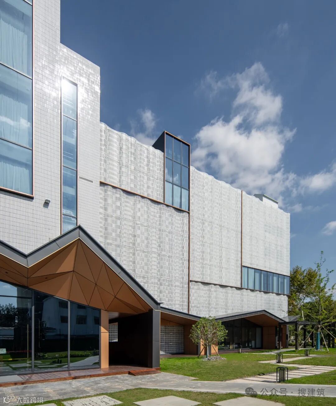 新建筑立面遵循“新旧对话,修旧如旧”的设计理念,以尊重历史风貌为基础,巧妙融入现代美学。设计团队对非遗元素进行了现代化的艺术诠释,选用弧形仿古纹路的穿孔铝板作为主要立面材料,将原建筑的面砖立面进行完全拆除后覆盖,为其注入全新的生命力。