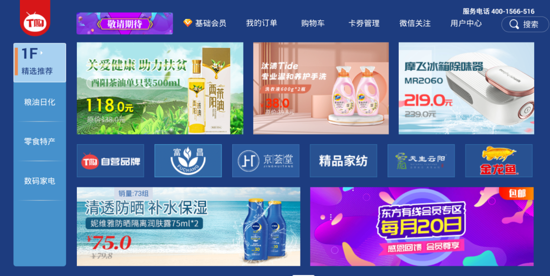 东方有线高清智能机顶盒用户打开电视—购物—TGO商城进入首页