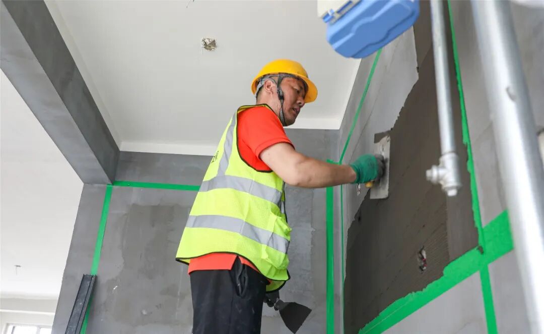 墙体粉刷甚至达到直接可装修水平,堪比简装批白效果,墙面提前进行拉毛处理,减少业主装修前的处理环节,地坪工艺采用精确测量平整度全过程验收;甚至还开展交付预处理,用专业设备将地板打磨粗糙,增加装修贴砖时的附着力……