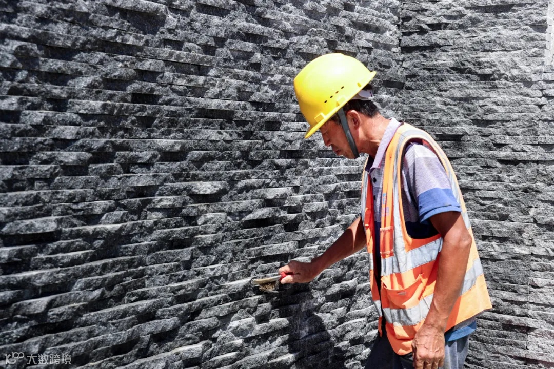 说起来有些不可思议,水幕墙的施工难点就在于,墙体比较长,有104米,110层,要求每一层石板的厚度必须一样,因此对石板加工的精度要求非常高。除了对厂家进行交底,现场的工人还要对石板进行精心挑选,每一层的厚度必须保证一样,非常浪费精力。
