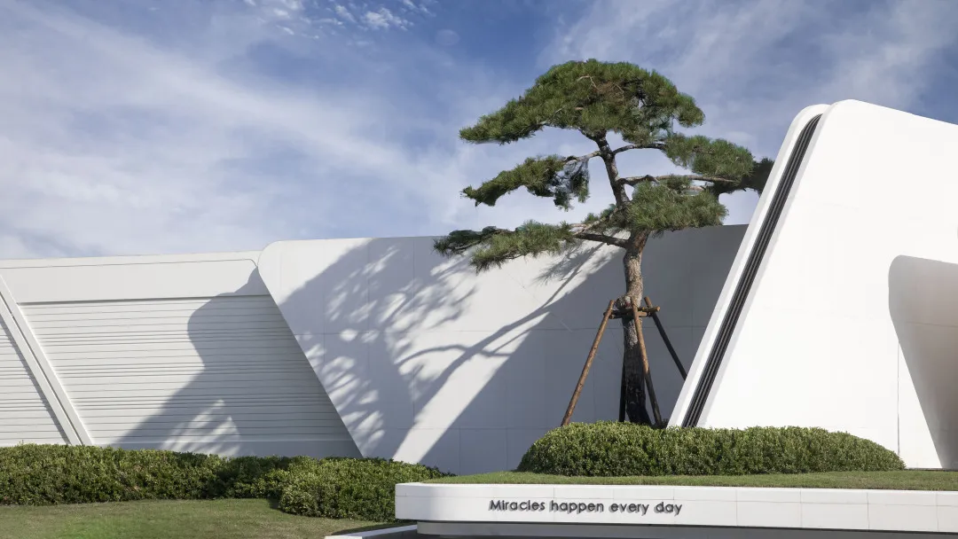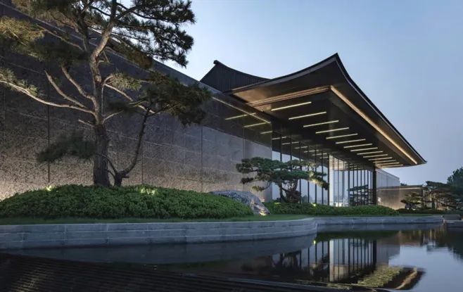 迎宾松涛,搭配约百米界面,给予百变的姿态,有孤植的美、有对话的美、有群林的美,每一棵松都能成画,群林营造画卷之美。