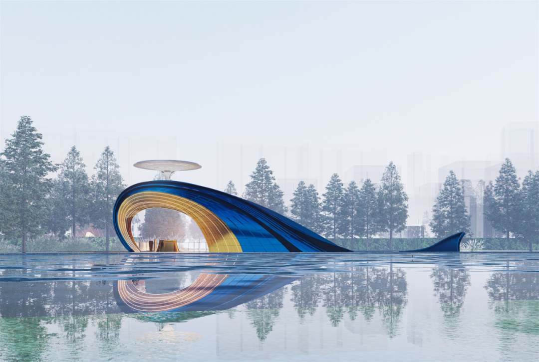 金沙缦岛大门由Wutopia Lab 主持建筑师俞挺亲笔设计。入得石鲸眼,便是桃花源。金沙缦岛大门的设计灵感来自人们心目中神仙居所的憧憬:“一池三山”中破水而出的鲸。