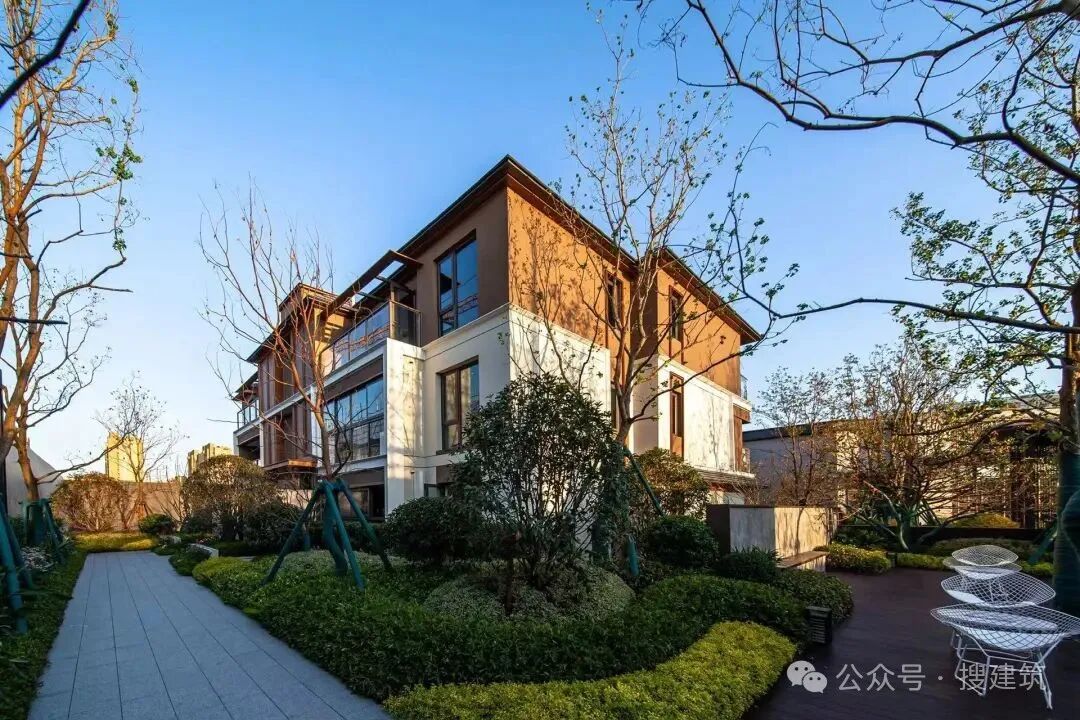 玻璃的轻盈,金属坡屋顶的厚重,在秋天乌桕树影的摇曳下,这片低密洋房,让人想到了上海“巨富长”的老洋房。