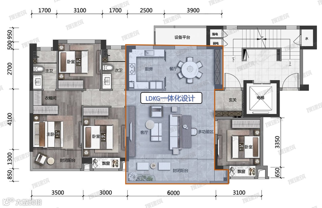 创新性的LDKB大通厅,不仅提高了采光面积,还增强了整体空间的互动性。在这里,业主可以拥有更多与家人互动的空间可能,三代同堂其乐融融。