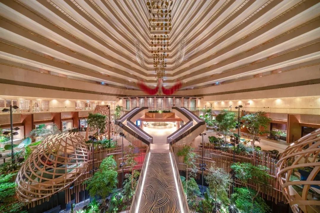 整个酒店建筑群包含了购物中心、酒店、会展、博物馆以及顶楼的空中花园,总建筑面积高达 154,938 平方米,如此复杂和高难度工程,在建筑界实属罕见。