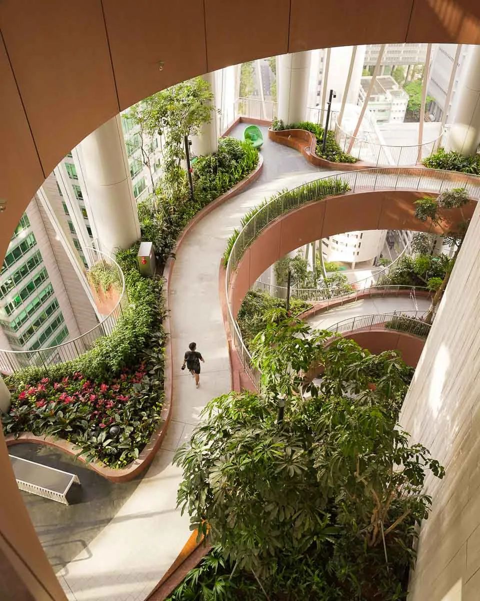 大厦为新加坡建立了全新的城市标签:绿植由建筑中部或顶部向外探出,将流线型的建筑立面剥开一个窥视的洞口,使立面线条极具动感。钢结构和玻璃立面彼此交织相互交融,又形成鲜明的对比。