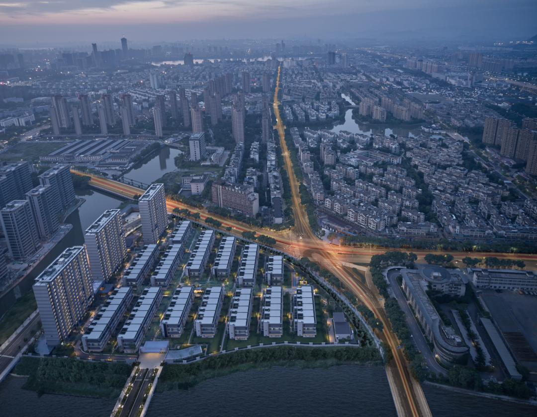 万科湖心湾位于绍兴市柯桥城区的坂湖居住区。19年7月拿地, 20年3月示范区开放,如今历时三年的精心打磨,已于22年的6月交付。作为万科在绍兴柯桥的G2类产品首秀,湖心湾承载了产品、立面的迭代责任,我们也希望通过这个项目探讨符合当下时代的非典型“墅居”生活。
