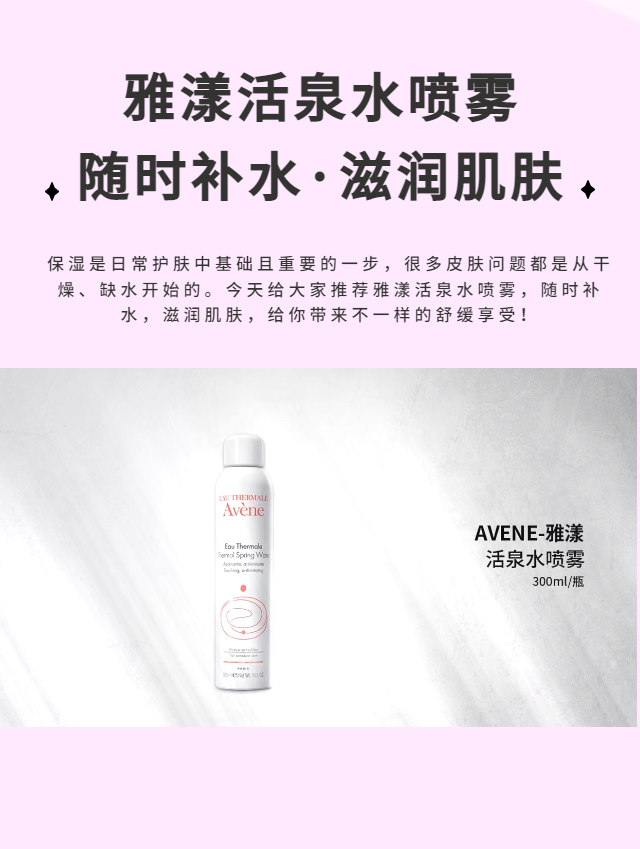 雅漾活泉水喷雾,直取天然活泉,轻轻一喷,随时随地补水保湿,感受大自然馈赠的舒缓力!