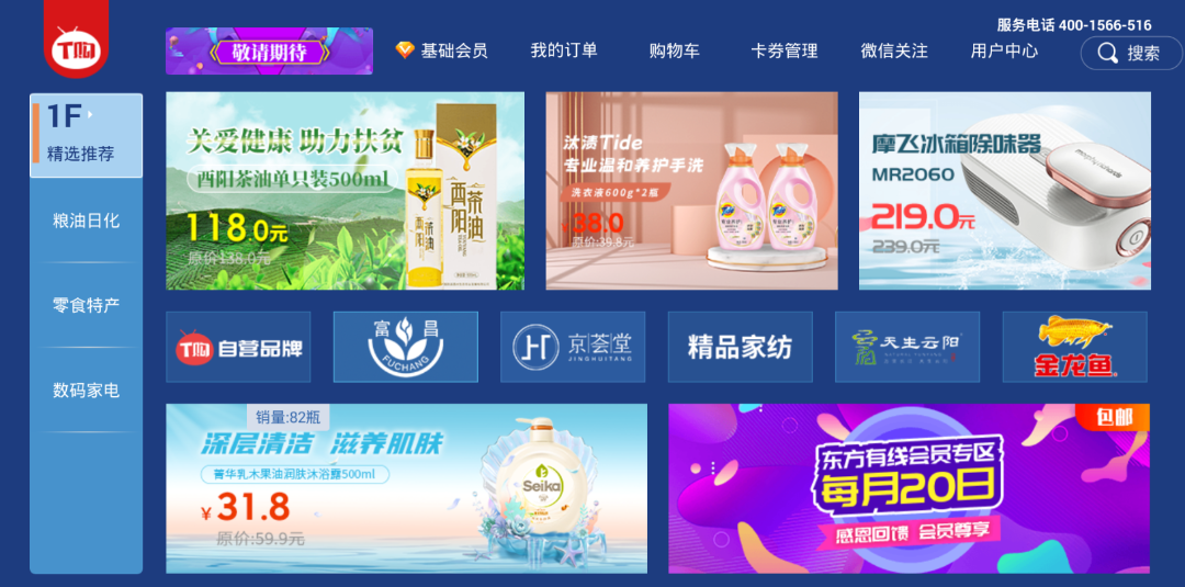 东方有线高清智能机顶盒用户打开电视——购物——TGO商城