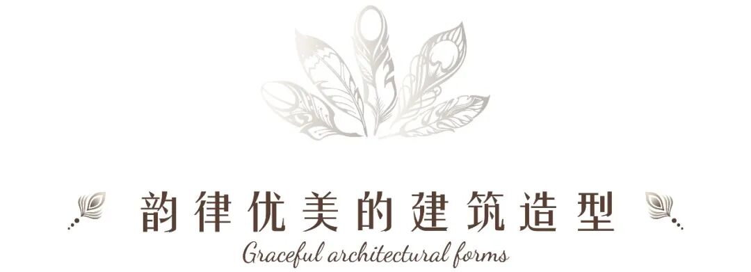 沿街高低错落的建筑层次减弱了对城市道路的压迫感,“雀翎”风情的阳台形成了独特的建筑表皮特征,犹如雀翎华丽绽放,气韵生动。