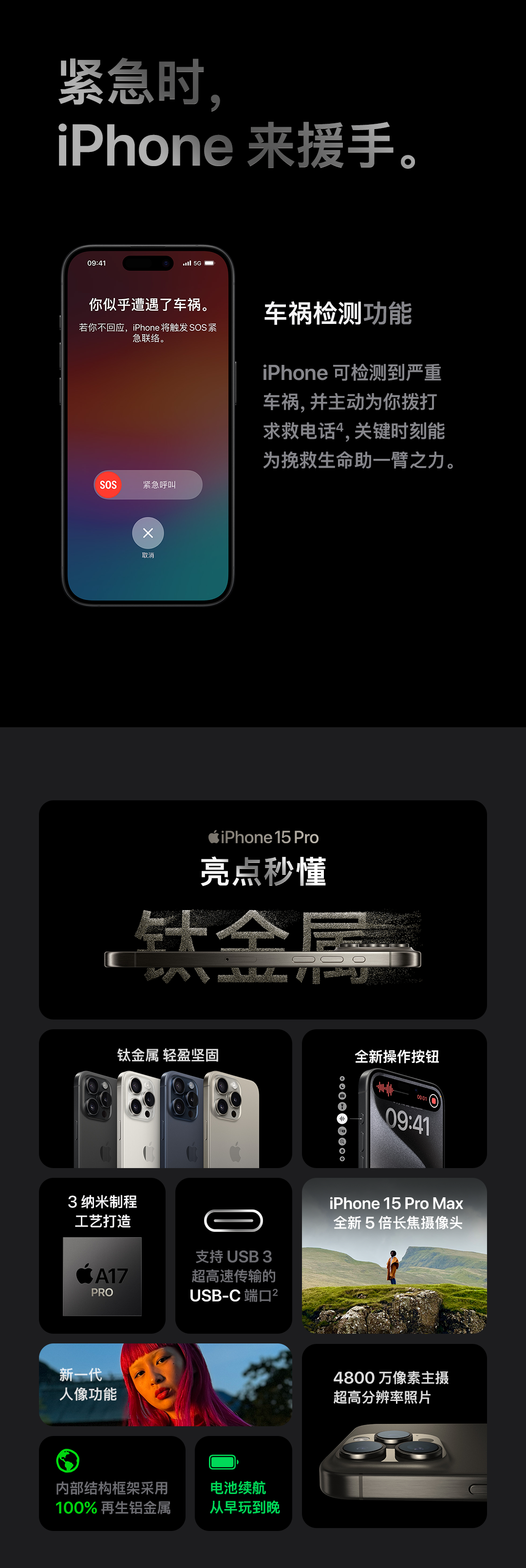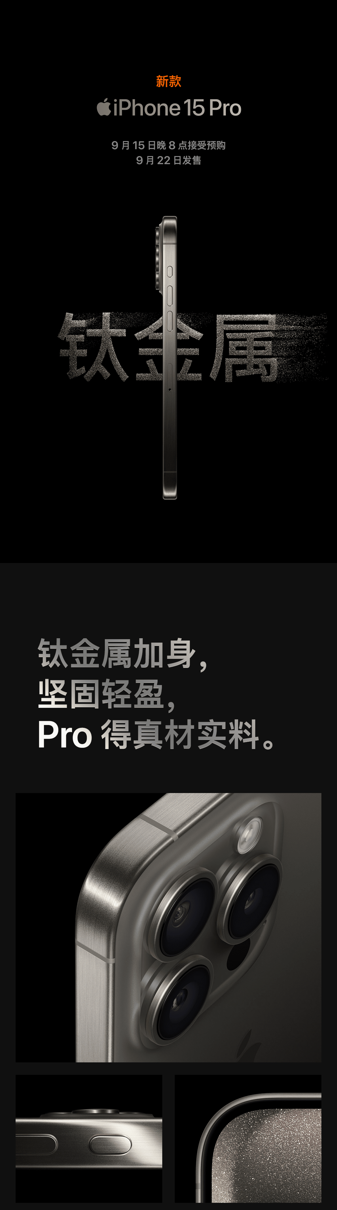 钛金属iPhone 15 Pro和登上灵动岛的iPhone 15新发布。