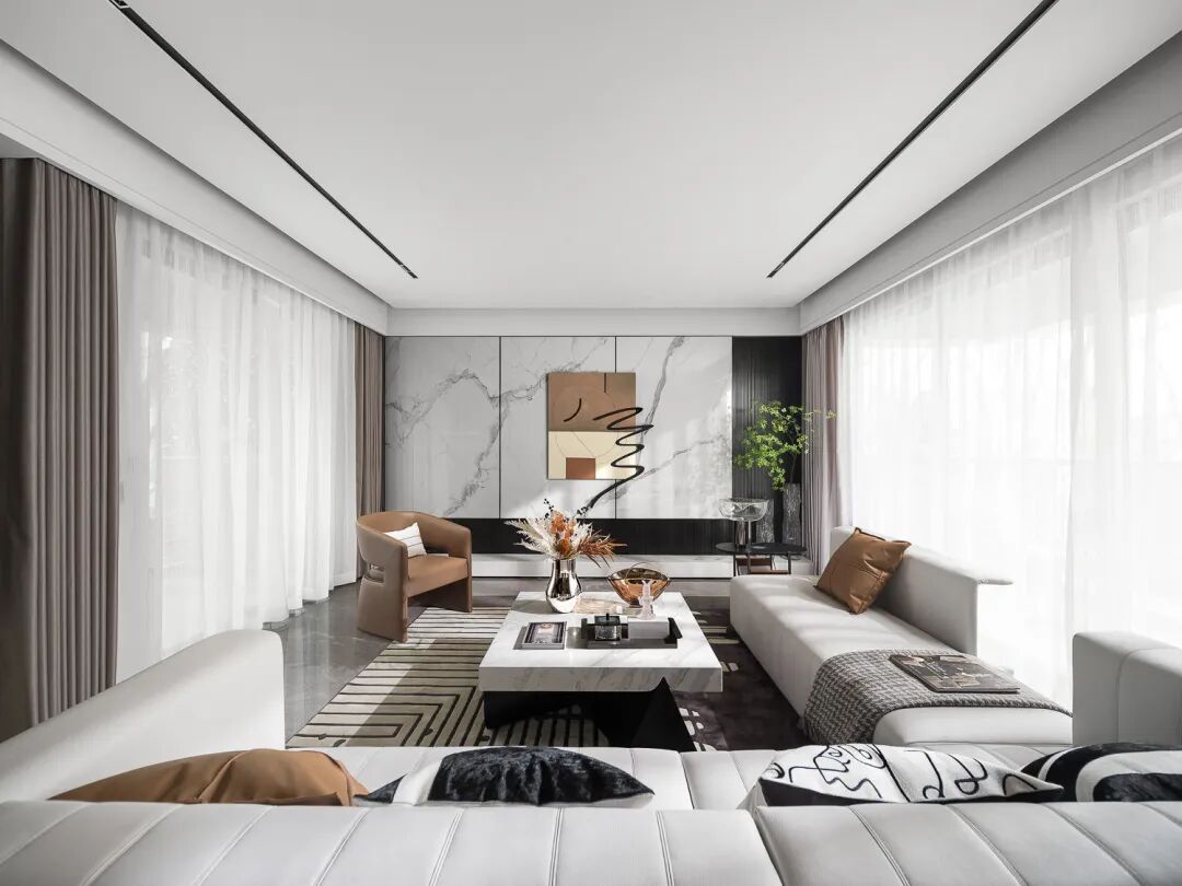 住宅立面采用流线型造型,强调立面的水平感和流动感,建筑风格极具未来感和标识性,清晰明确的体块交接,去除繁杂的外部装饰构件,大体块的虚实对比,简洁大气,强调立面比例,对经典的比例与尺度精准把控,反复斟酌,在最终效果上追求现代工艺和经典比例的和谐统一。