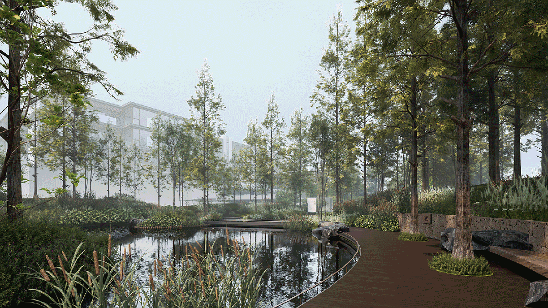 漫步水上,耳畔是潺潺流水,目光所及是深浅绿意,步移景异间,可赏可游可栖,如置身山水之间,“蝉噪林逾静,鸟鸣山更幽”的东方意境在此被生动演绎。