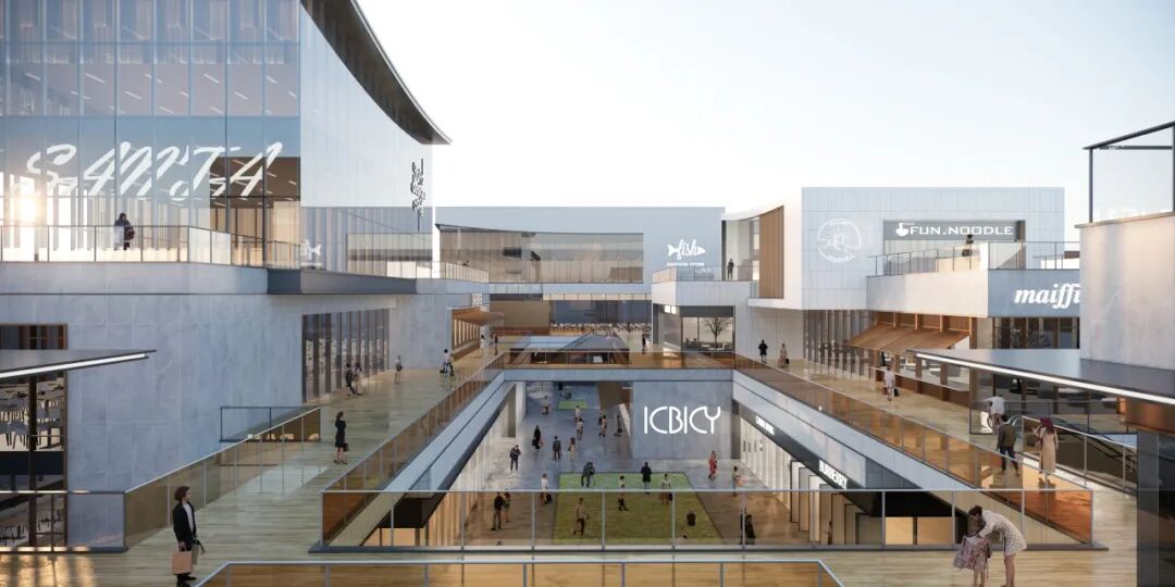 相较于附近的大型商业建筑,基地周边的历史文化建筑体量均较小,因此,三益设计团队采用前沿的街区设计理念,创新性地提出了“森盒绿谷”的设计概念,以呼应周边建筑体量。我们通过场地内商业小盒子的紧凑布局、连廊串联及退台景观的打造,形成兼具自然生态与独特商业氛围的街区,既与邻近的历史文化建筑体量相协调,又通过文化及景观与周边的商业大盒子形成互动对话,提升了整个区域的风貌与活力。