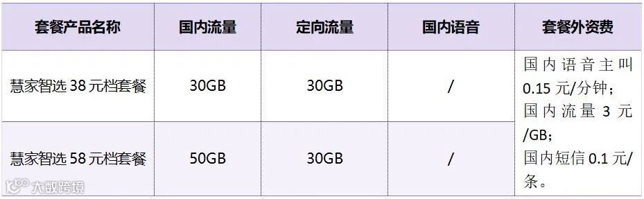 2.选购慧家智选38元/58元两档套餐的用户,前三个月有机会免费体验,并可使用套餐内通用流量及定向流量,超出套餐的部分需自行付费。