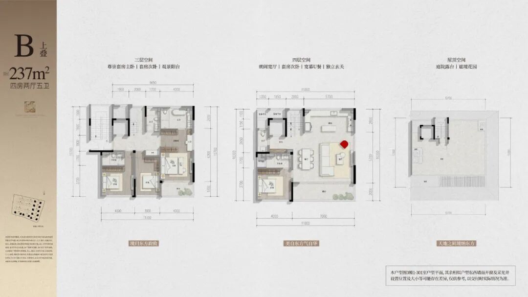 在项目规划方面,星润府的住宅面积主要集中在210方以上的区间,同时相较于东润府,星润府新增了一个灵活多变的空间。