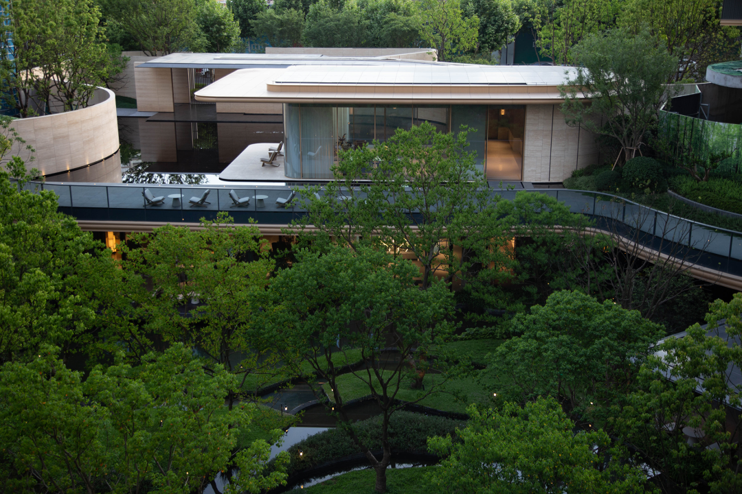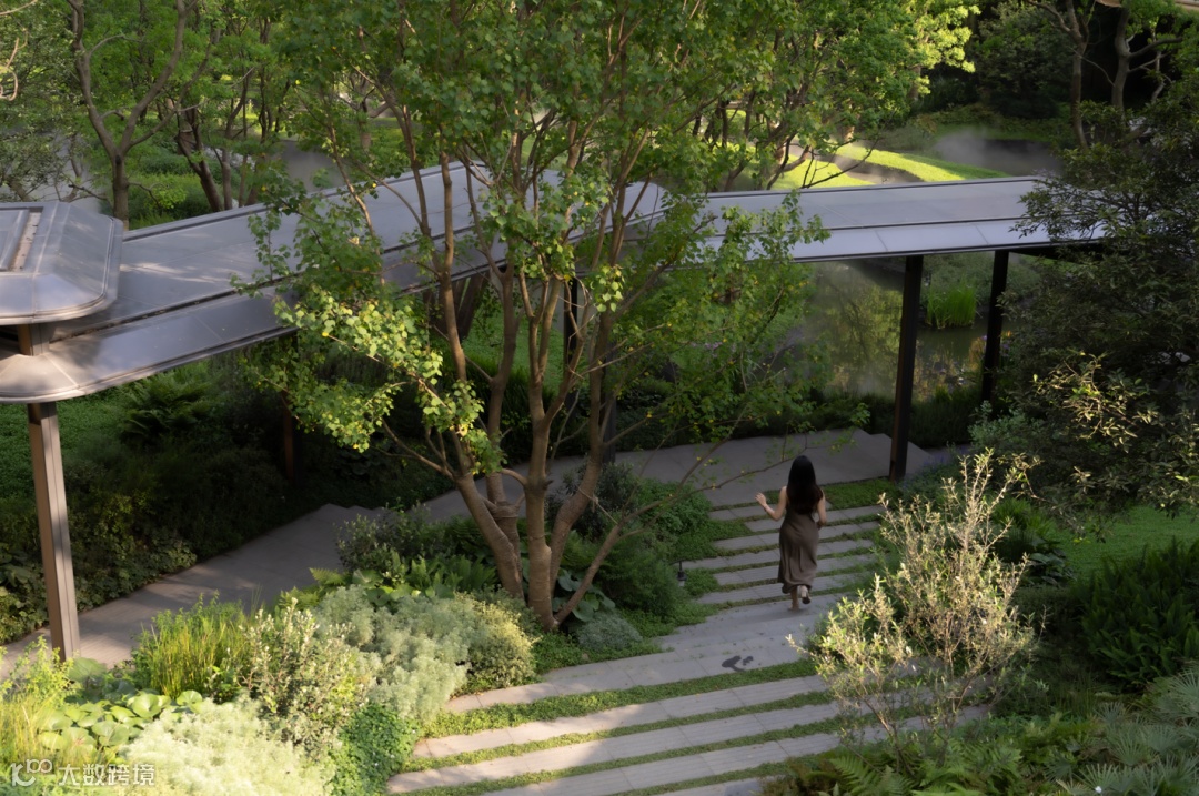 漫步水上,耳畔是潺潺流水,目光所及是深浅绿意,步移景异间,可赏可游可栖,如置身山水之间,“蝉噪林逾静,鸟鸣山更幽”的东方意境在此被生动演绎。