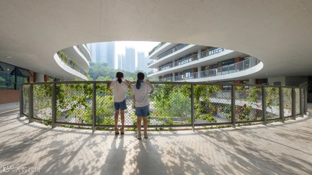This space not only makes it possible for students to experience the outdoors without having to go downstairs but also provides an opportunity to leave the classroom and interact with each other. Thus, this series of undefined semi-outdoor spaces forms a micro-plaza for the center of the school's community.