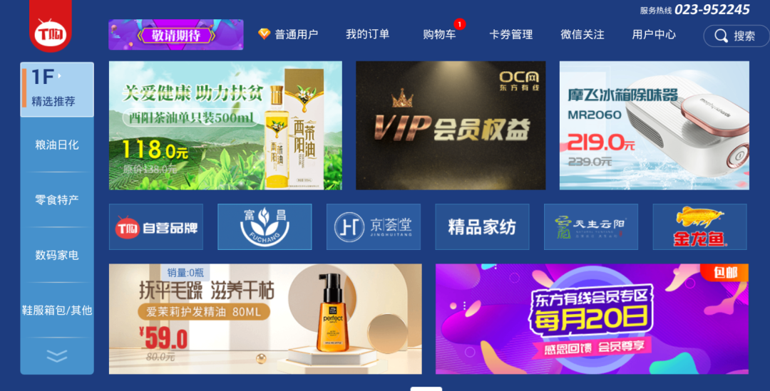 东方有线高清智能机顶盒用户打开电视——购物——TGO商城