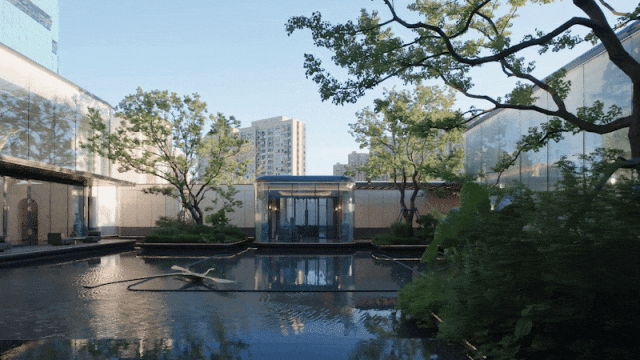 继续漫步前行,一处屹立着以武康大楼的建筑符号为基底,以现代曲线与玻璃工法为笔触的艺术地标,倒映着时代光景的镜水院落徐徐展现,唤醒海派的记忆情感。设计不仅仅是营造一个空间,更是一个生活发生的场所和精神文化的载体。