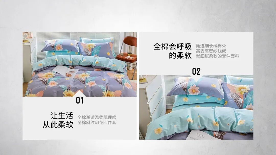 ,编织成细腻柔软的套件面料,手感细腻,透气蓬松,全家适用。