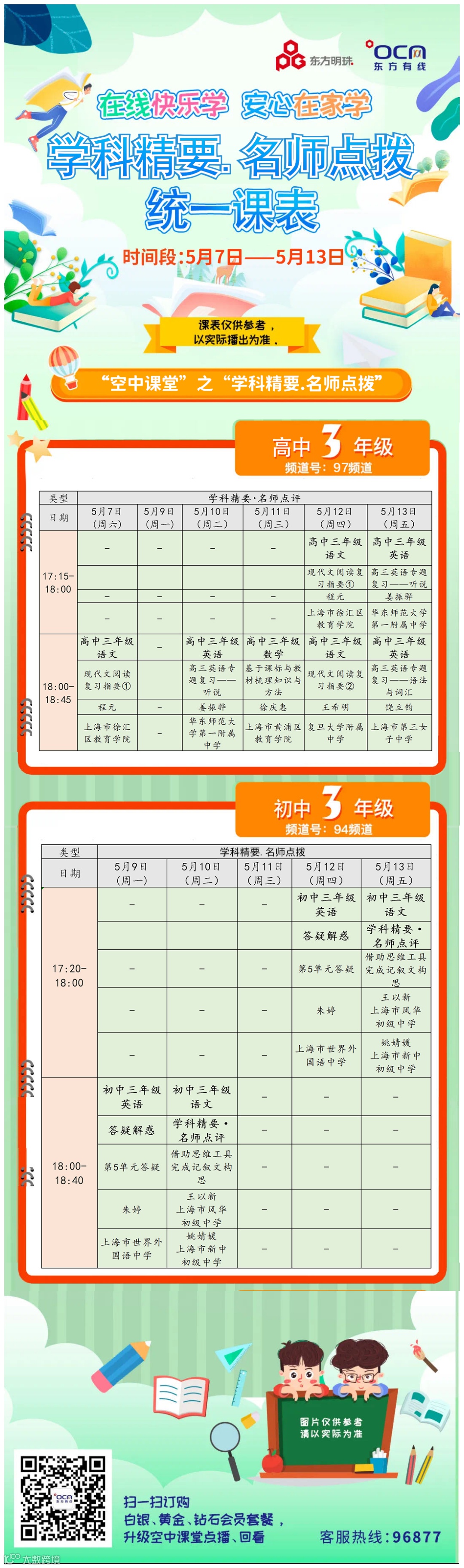 为了让考生们以更好的状态迎接考试,5月7-13日,在高三及初三年级的科目栏目下,“空中课堂”推出全新板块“学科精要.名师点拨”,供初高中学生选择使用、复习及查漏补缺。该板块聚焦初高中的语文、数学、英语三门重点学科,引入名师讲解梳理重点难点,定制化的复习课程,为毕业班学生有针对性的进行教材梳理和专题复习。后续还将上线高中等级考科目复习课程,敬请期待!