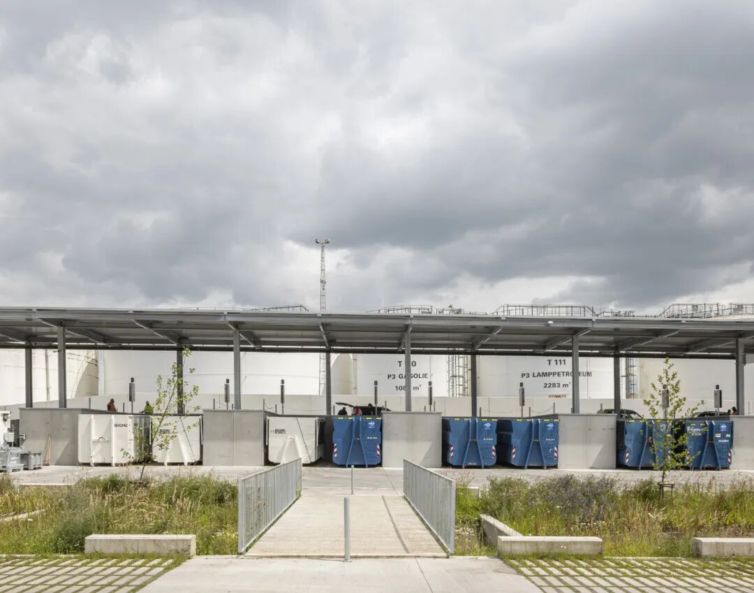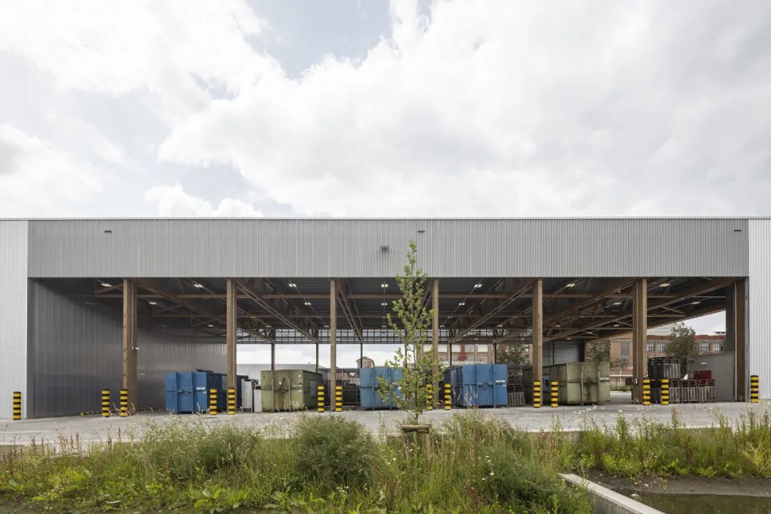 The standard elements used for the industrial hall make it easy to adapt the structure in the future, by adding additional bays. A demolition inventory was also made to encourage the reuse of materials and equipment via reuse channels. A "box-in-a-box" system was introduced for the sorting cabin, offering maximum flexibility to relocate or replace this activity without the need for major renovation. In the container park there is a recycling centre, which offers space for the recovery of goods that can still be used, in this way they can be reintegrated via channels for reuse. This sustainable project will be the reference for all future construction and renovations of the Brussels Network Agency.