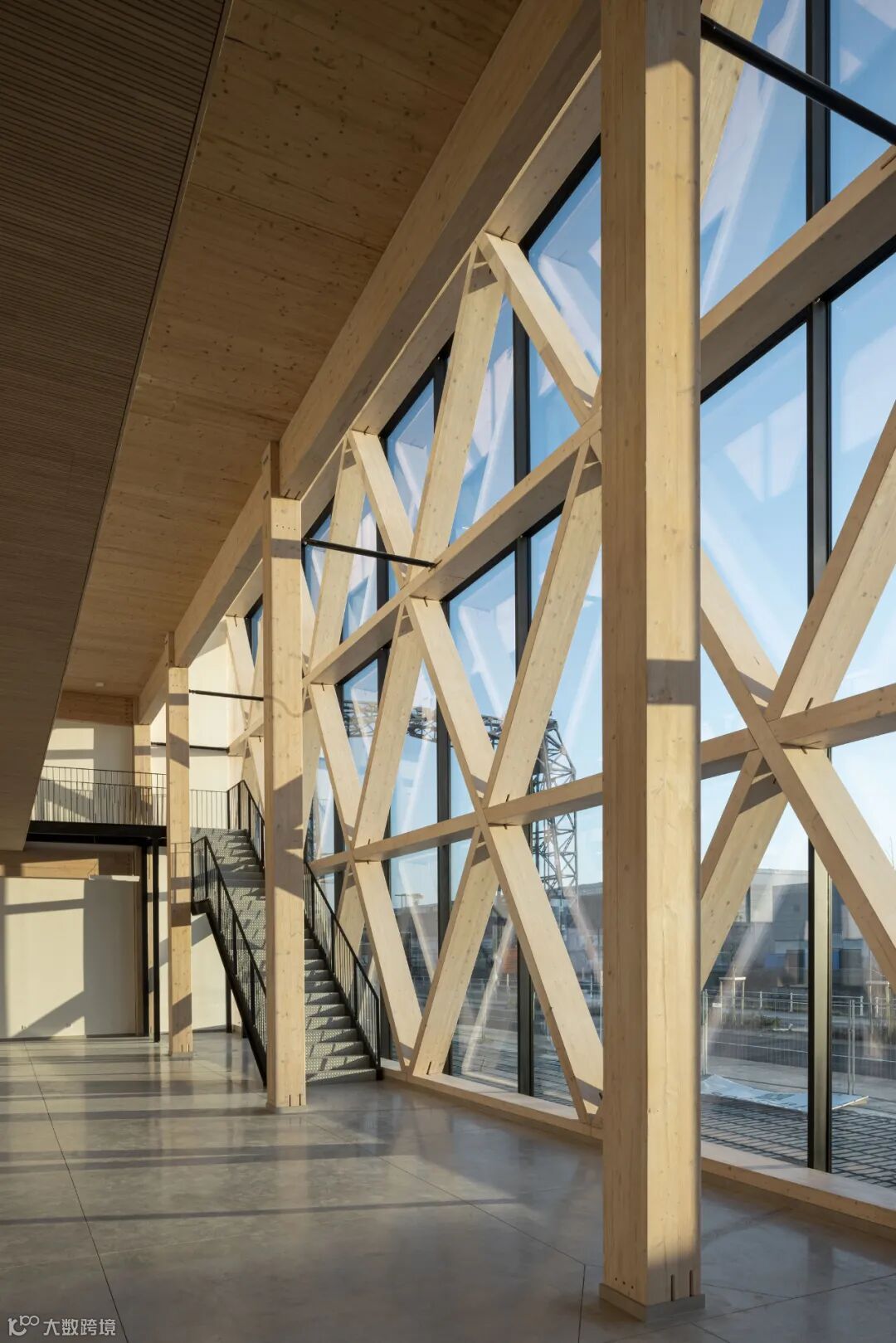 社交大楼内设有办公室、更衣室和员工食堂,为员工提供了一个实用而舒适的环境。场地的建筑设计提升了员工的幸福感。室内空间沐浴在自然光中,确保了卓越的视觉、声学和热学舒适度。木材的广泛使用和室内空气质量得到了优先考虑,从而提供了一个健康舒适的工作环境。