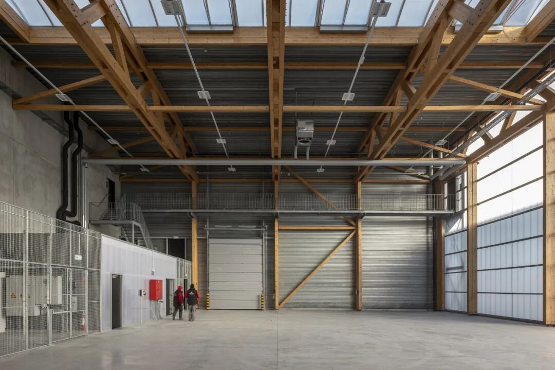 The social building houses: offices, changing rooms, and a canteen for staff, providing a functional and comfortable environment. The site's architecture enhances employee well-being. The interior spaces are bathed in natural light, ensuring superior visual, acoustic, and thermal comfort. The widespread use of wood and the quality of indoor air were prioritized, offering a healthy and pleasant working environment.
