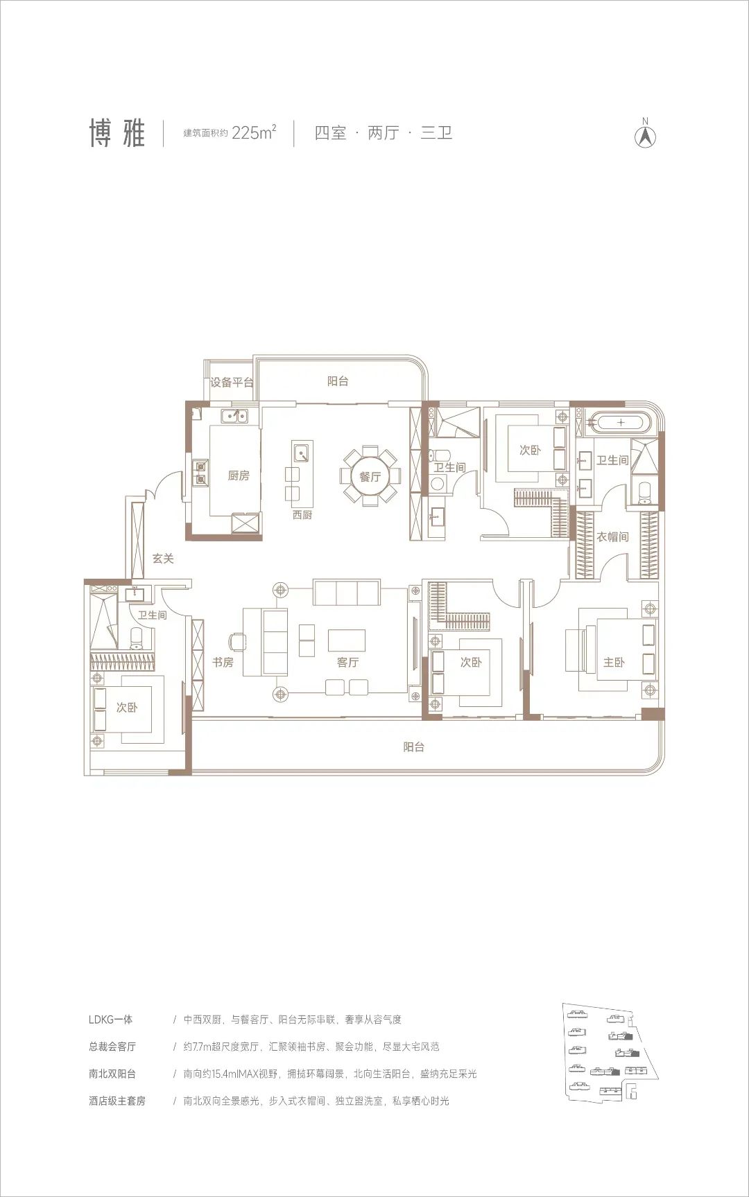在项目景观视野最好的高层楼栋,户型设计为多面宽超大尺度南向布局,将景观优势最大化展现,提高户型的价值点和竞争力。