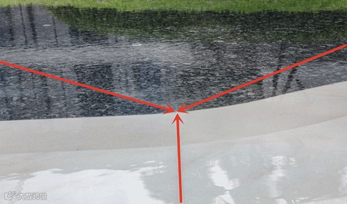 池底采用光面蓝钻的进口天然石材,在太阳的照射下闪闪发光,犹如在池底铺满了砖石,赋予约245㎡中心水景巧夺天工的妙趣,结合松树、LOGO所带来的光影,打造了一处美轮美奂的水中岛屿美景。